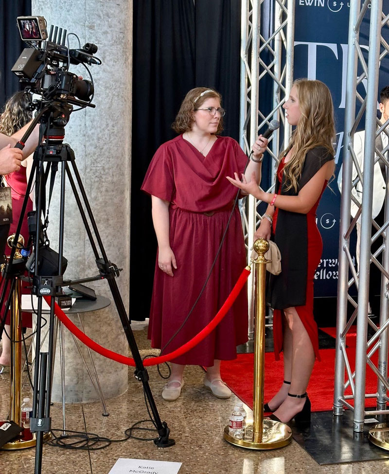 Gerlach being interviewed by Katie McGrady at the U.S. premiere