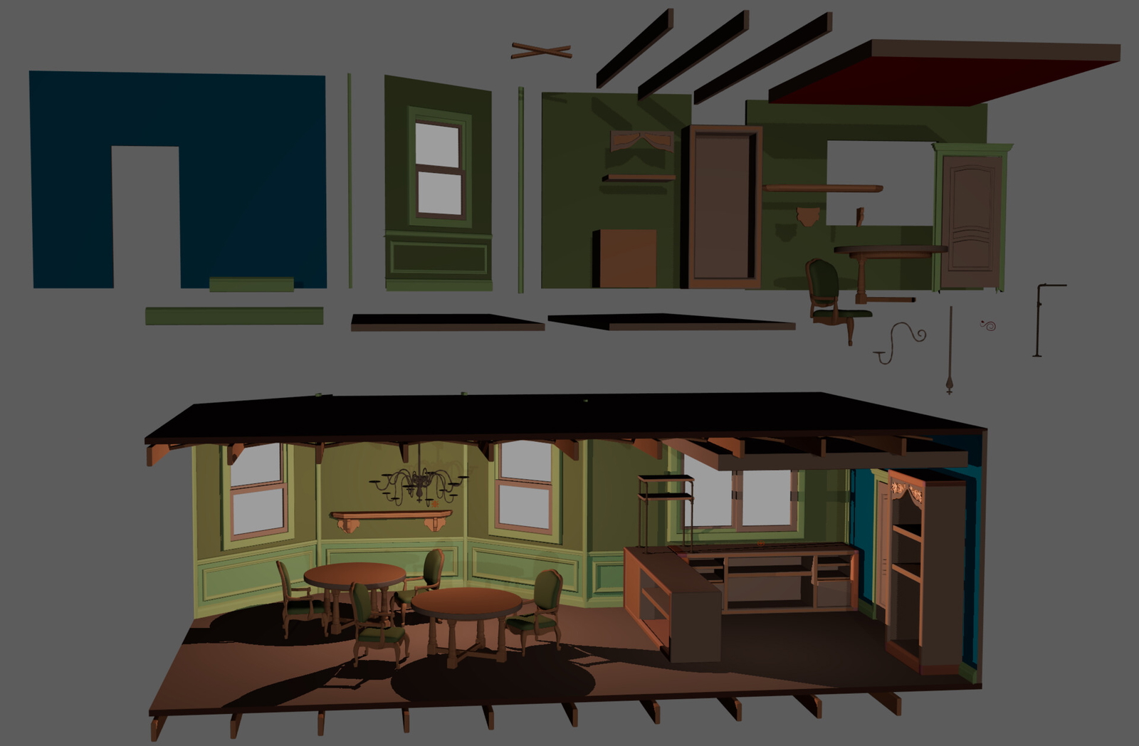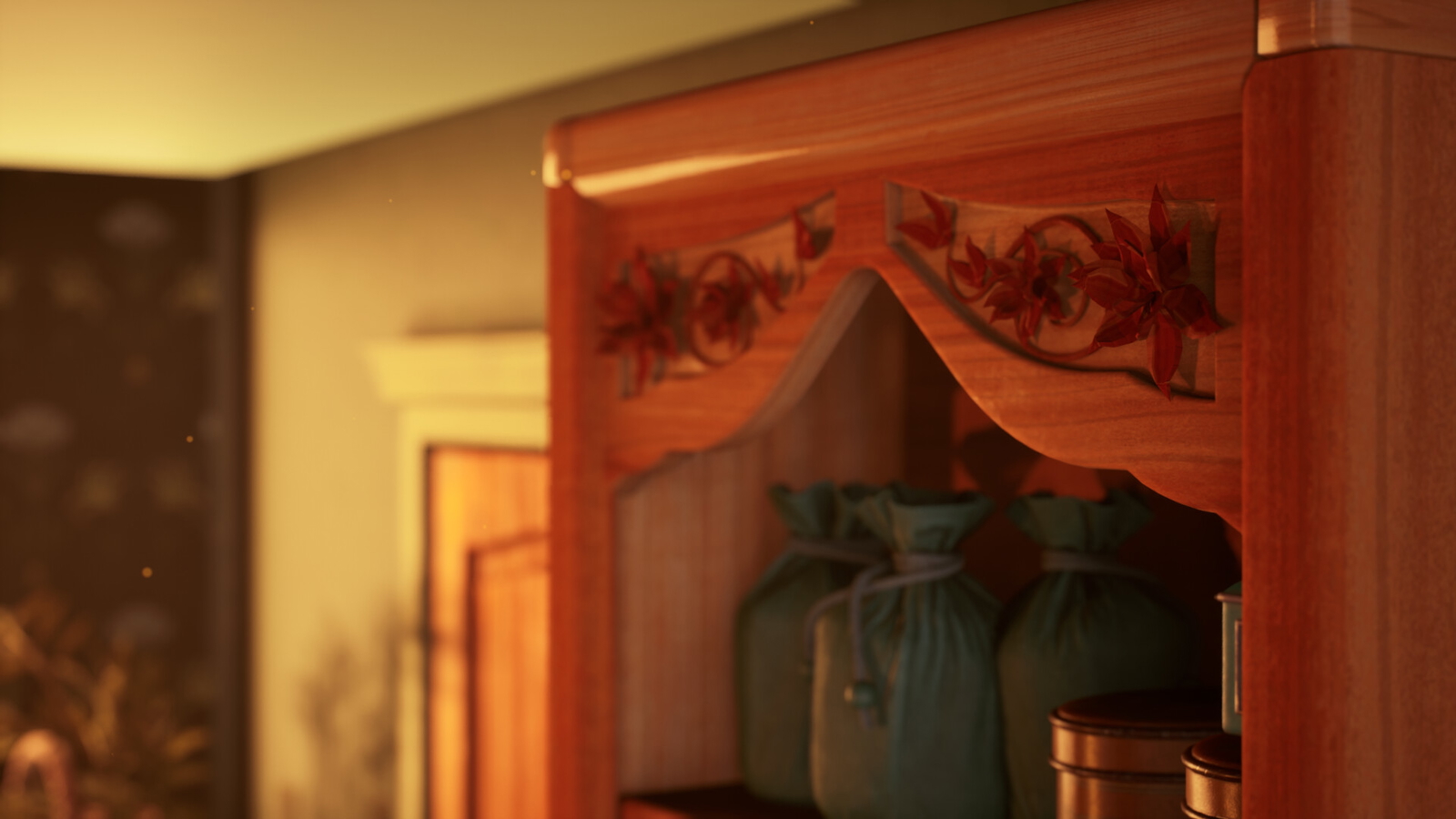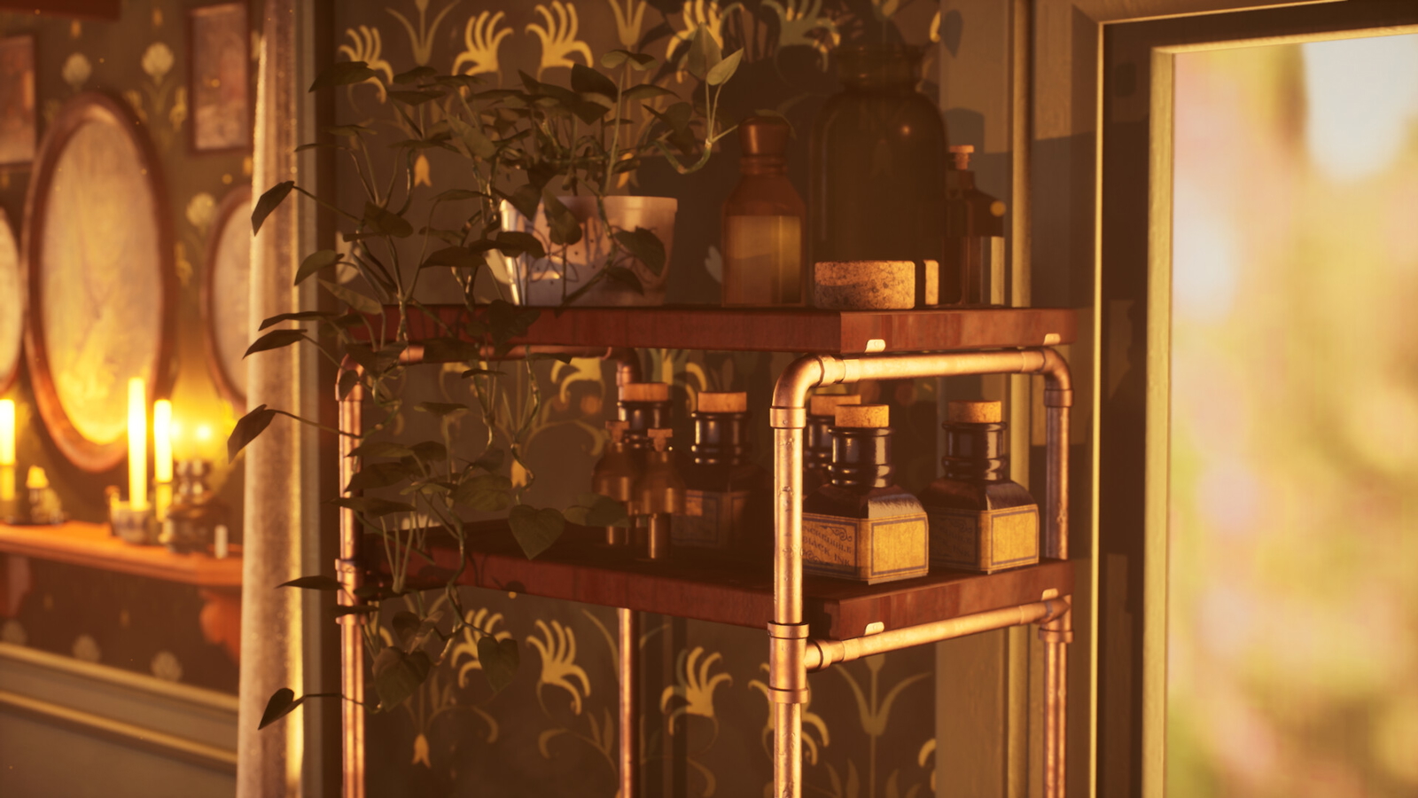 “In this project, I stepped out of my comfort zone a fair bit. I tried out parallax windows (ended up scrapping them unfortunately since they didn't look right, but still learned a lot), made dust particles in Niagara, explored the Movie Render Queue, did a lot of texture editing within Unreal Engine so I could quickly reuse materials, played around with the curve tool and quad draw (which I've used before but needed a refresher), and learned a ton about lighting. I also edited the texture found within the kitbashed picture frames to hold my own art pieces instead of the provided ones, which was fun since I had to add some filters to get it to match the antique look. I made as many modelled pieces as I could to be reusable, aiming for a semi-modular kit. This project took a while, but I'm proud of how it turned out. I hope you enjoy! Made by me using Maya, Substance Designer, Unreal Engine 5.4, and kitbashed props. Base layout and furniture modeled by me, small props such as tea cups & spoons found in Fab asset packs.”