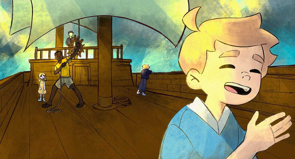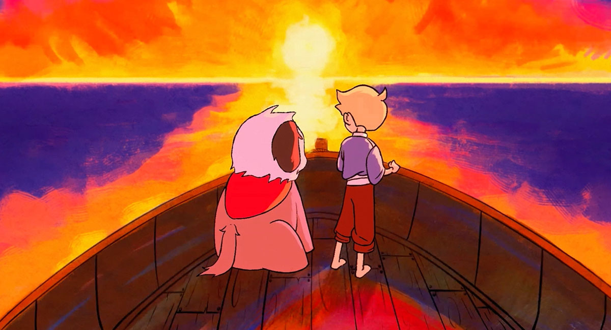 Animation Capstone is technically a 9-month sequence (3 courses); The Heartbeat of the Sea took advantage of an extra year of pre-production, plus 12 months total of production. A large team was formed to assist Kateri and Clareanne in completing 14 minutes of animation. They used tools like Adobe, Krita, Callipeg, and Procreate to accomplish the keyframing, inbetweens, coloring, cel lighting, and background art.